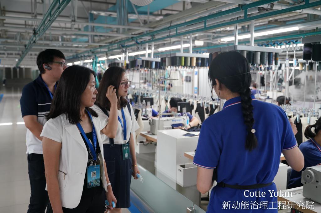在李克鹏的陪同下,郑海涛一行乘车依次前往酷特智慧工厂—工业定制式生产车间、熔喷布生产车间和口罩生产车间进行参观。现场观摩了从数据采集、数字化裁剪、智能仓储到智能物流一条龙式完整的智能制造工业流程,庞大的机械传送带将每一位客户的私人定制产品自动传递给相应工种的技术人员,配合智能终端,一对一地完成技术加工制作。整个车间没有管理人员,扁平化的管理模式充分赋能每一位员工,大大提高了管理效率和工作效率。