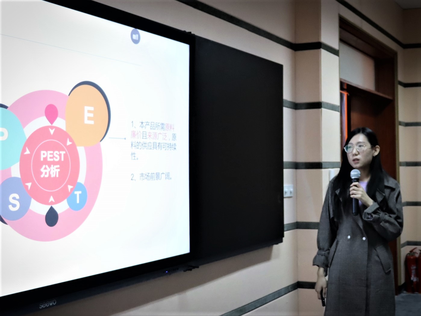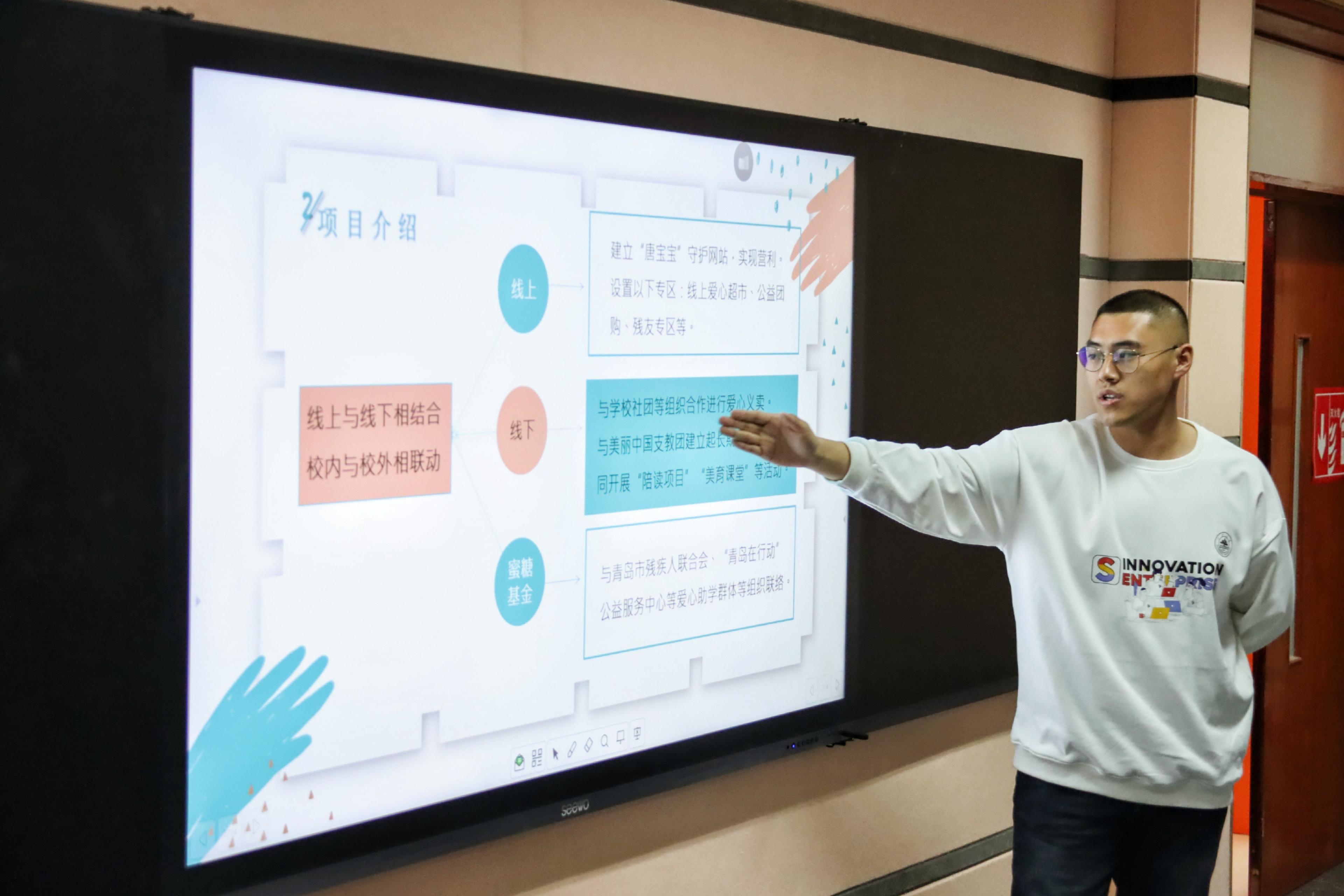 刘振副教授、张武博士担任评委。路演展示中,各项目团队通过PPT的形式分别从自己的项目概况、团队运营、组织成员、市场分析、竞争优势等方面进行展示分享。展示结束后,评委们对项目进行答辩提问,并从各个不同的角度给出了指导和建议,使得路演团队受益匪浅。路演团队成员表示,通过参加此次活动,不仅锻炼了个人能力,完善了创业项目,也为今后的创业之路找到了更为明确的方向。