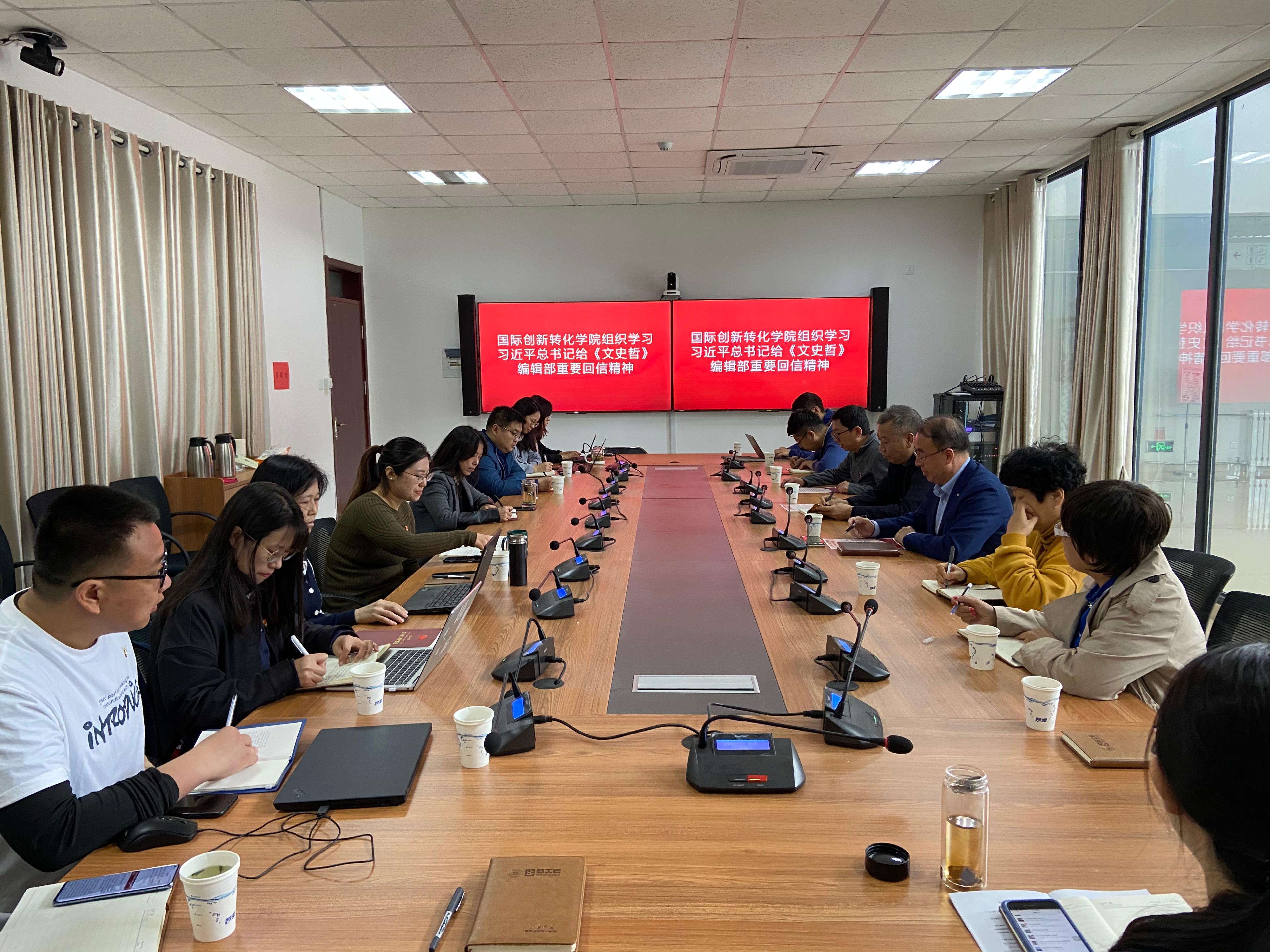 的亲切关怀和巨大鼓舞。他对学院工作提出了几点要求:一是坚守敢为人先的学术首创精神。他谈及期刊创刊的历史背景,敬佩一代代山大人敢为人先、攻坚克难的精气神,勉励学院全体教职工坚守初心、砥砺前行,不断为创建新兴交叉学科而奋斗,争做学院建设的参与者、贡献者和引领者;二是坚持追求卓越的工作作风。《文史哲》坚持质量立刊,求真务实,追求卓越,希望大家感悟回信精神,并转化为做事的自信和动力;三是追求学术引领。广大科研工作者要扎根中国大地,立足学术前沿,坚持守正创新、薪火相传,积极打造“创新转化学”的高端学术阵地;四是坚持立德树人的初心使命。学院工作要重视延揽大学者,造就小人物,潜心科研,立德树人,为优秀学术人才成长创造条件、提供支持;五是推进学术交流的国际化。他要求大家坚定“四个自信”,加强国内外学术交流,推动中国理论知识创造性转化、创新型发展,在国际舞台提升中国话语权。
