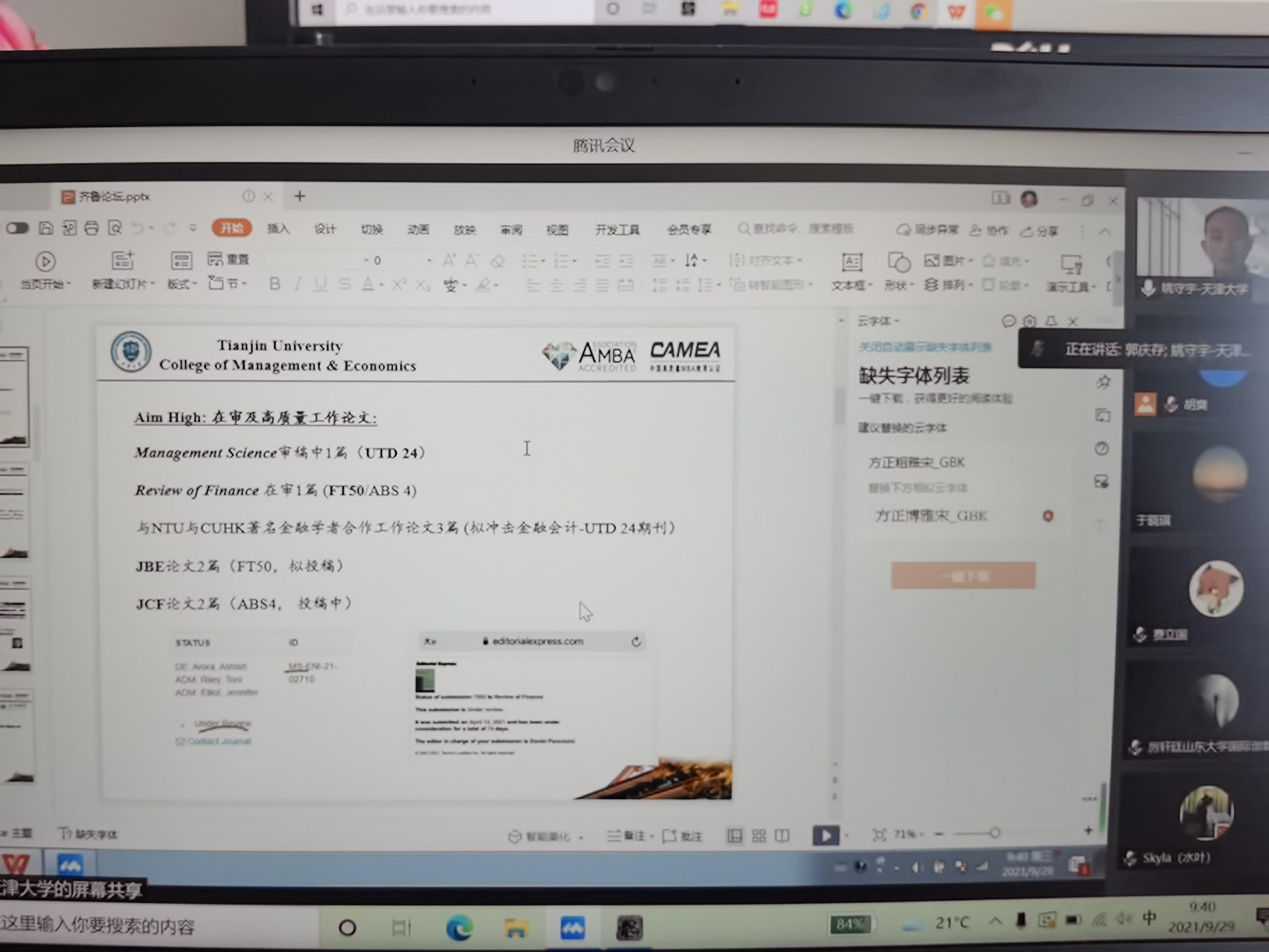郭庆存教授针对学者报告进行了点评,并就研究方法、研究热点等问题进行了交流。学院与会青年教师卢翠翠、赵云、张武从全球创新指数研究、海洋碳汇、公司创新等方面与青年学者进行了充分交流,期待大家加强学术沟通,共同进行课题研究。