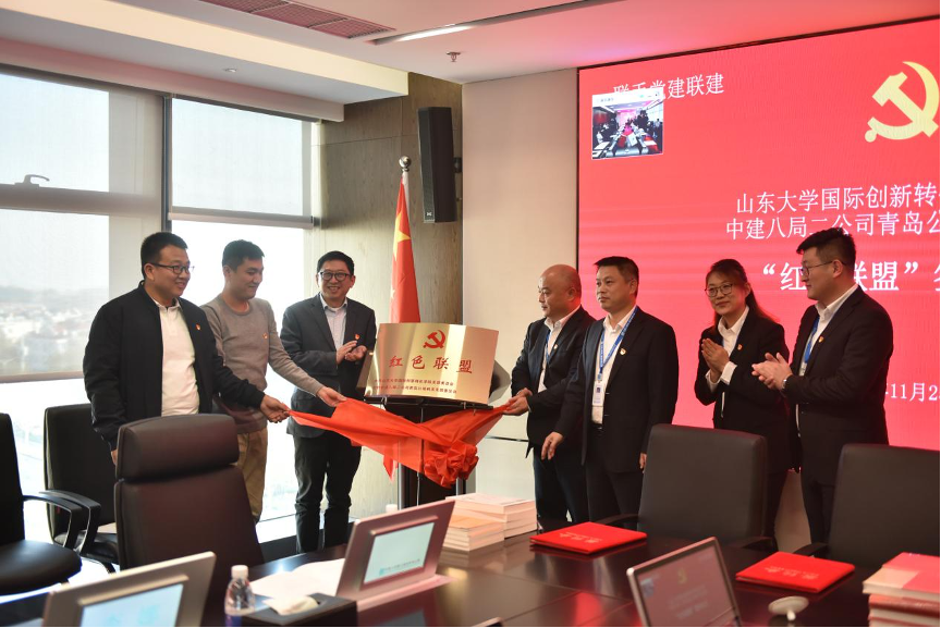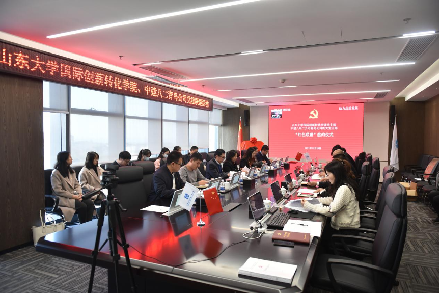 党支部与中建八局二公司青岛公司机关党支部共同举行“红色联盟”签约暨联合党建活动。中建八局二公司青岛公司党总支副书记、执行总经理陈刚,党总支副书记、工会主席张元善,国产视频