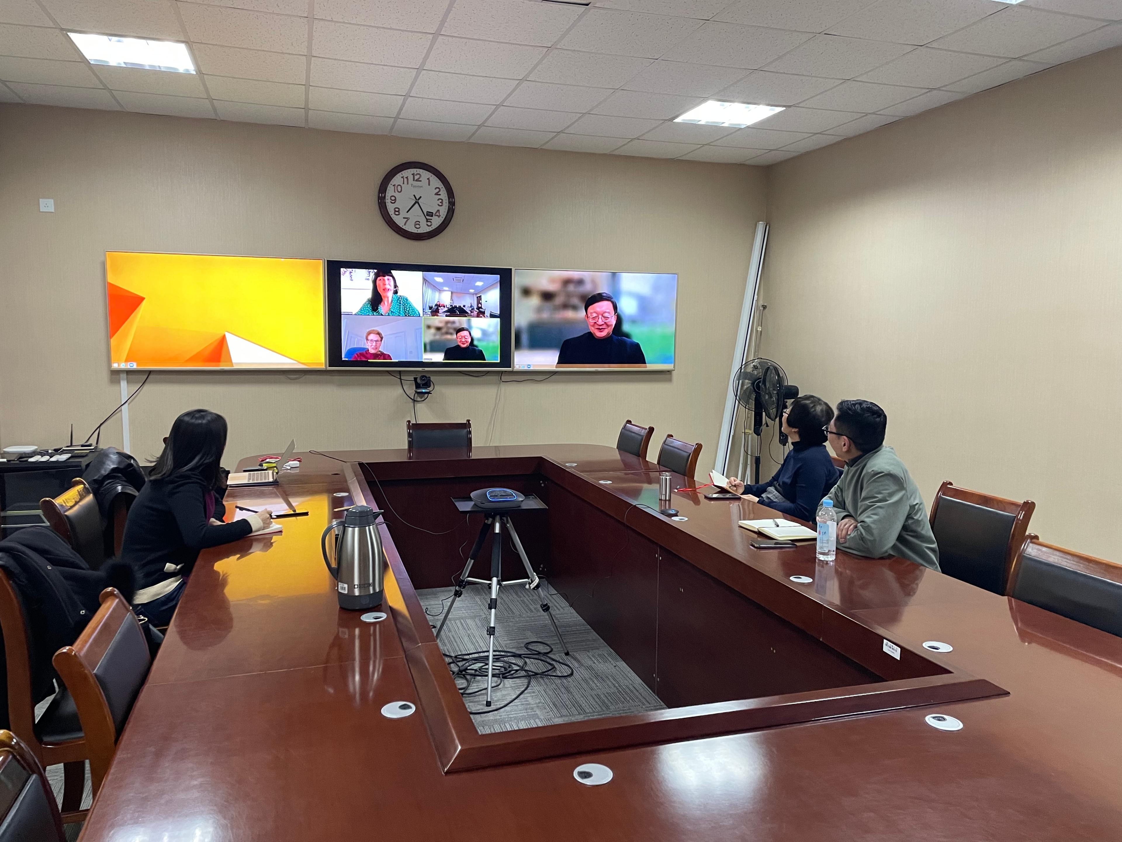 学院副院长乔岳教授介绍了学院教师团队与剑桥开展的科研项目进展、创新转化系列教材编写以及学院教学情况,并对学院下一步与剑桥的合作提出了初步方案。剑桥方介绍了未来两年教学科研合作的具体项目规划和设想。与会人员对合作事项进行了探讨,并商定由剑桥大学嘉德商学院与国产视频