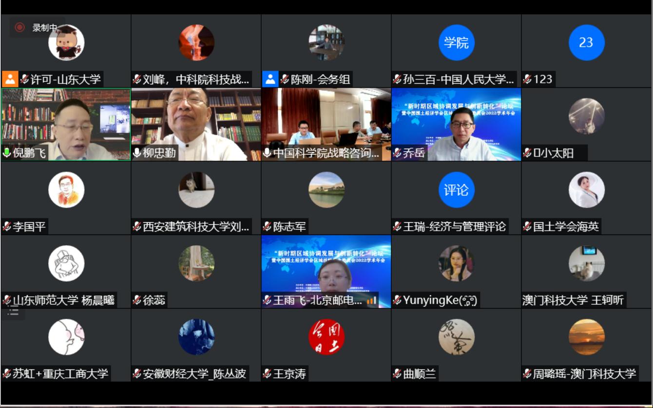 人文社会科学青岛研究院、澳门科技大学可持续发展研究所协办的“新时期区域协调发展与创新转化”论坛暨中国国土经济学会区域战略专业委员会2022学术年会通过线上形式顺利召开,并通过中国国土经济学会所属《今日国土》抖音、微信公众号等渠道同步直播。