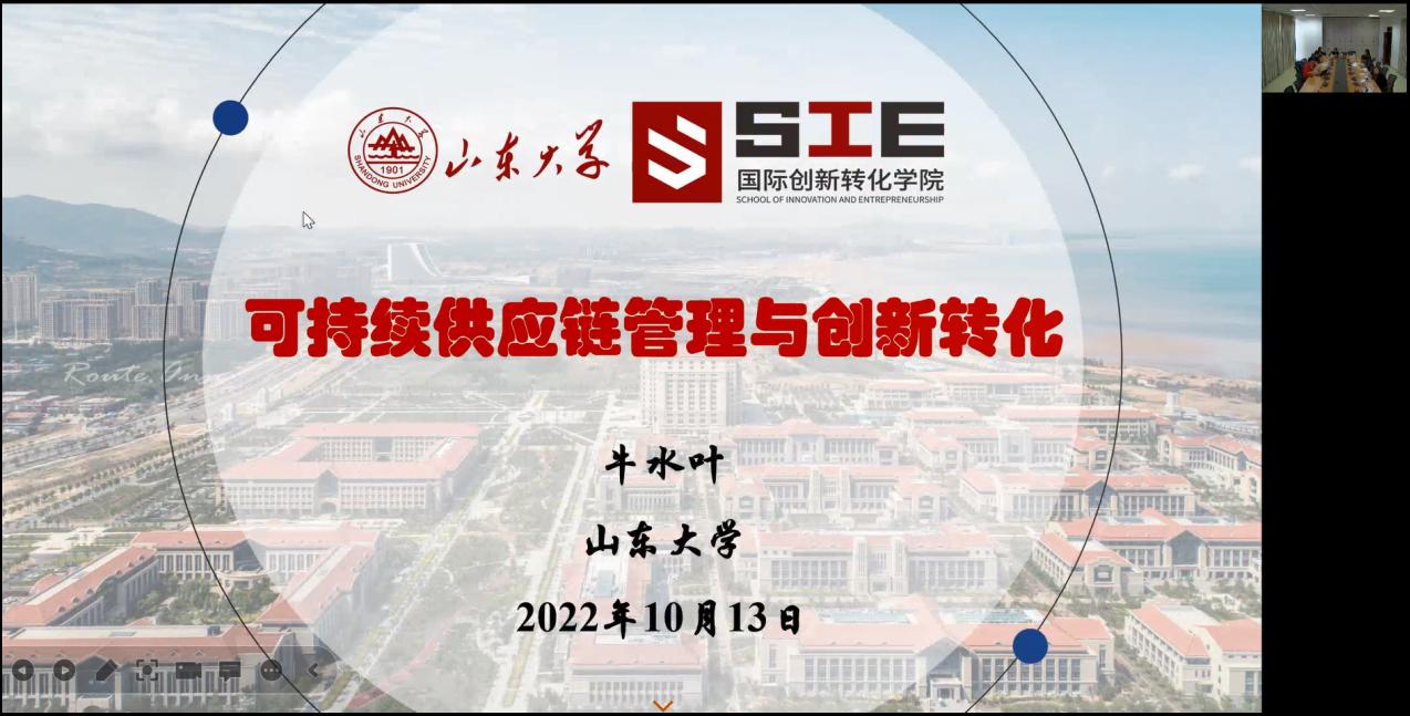副研究员牛水叶老师以“可持续供应链管理与创新转化”为主题,分享了关于供应链管理与创新链管理融合研究的思路及观点,学院教职工以线上线下相结合的方式参加了此次交流活动。