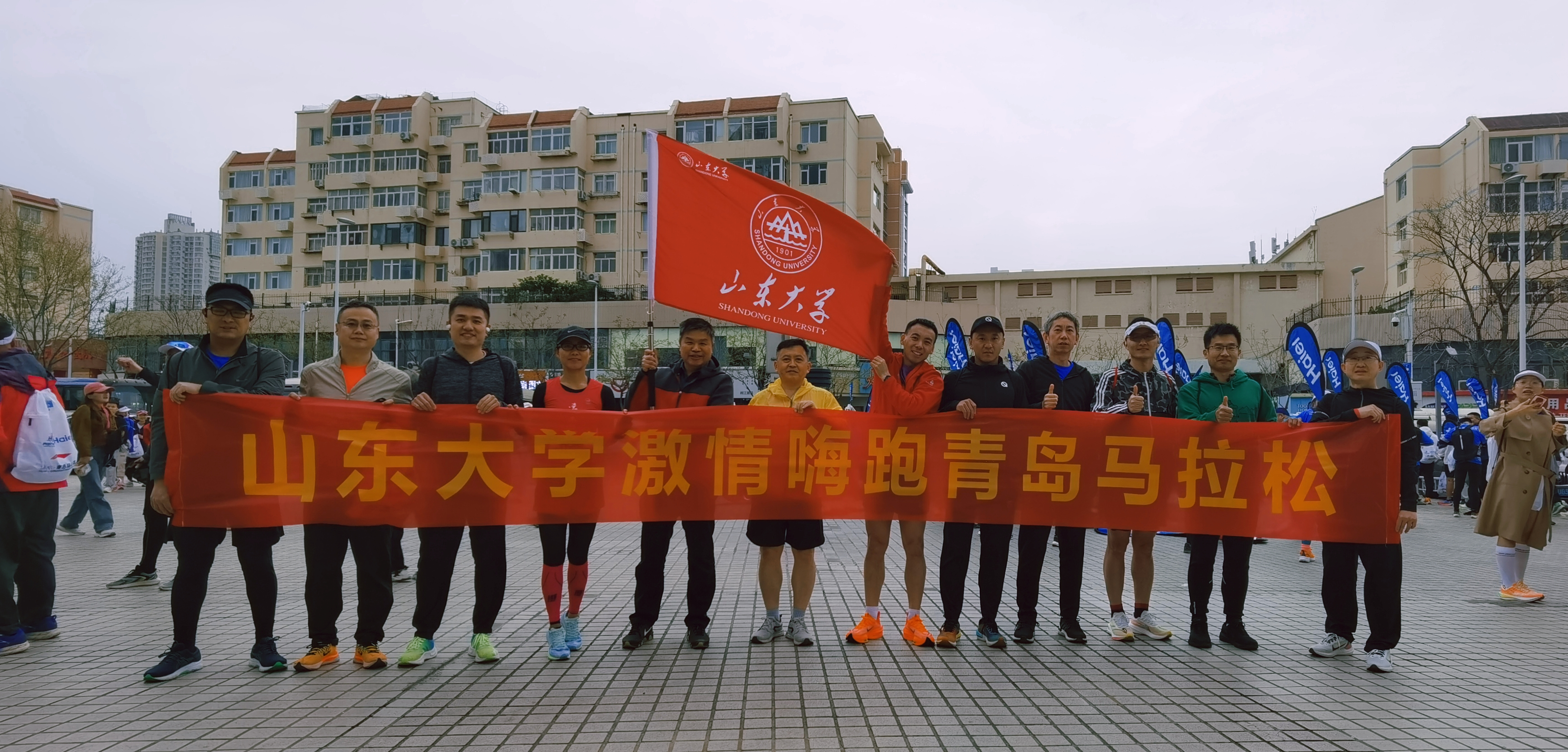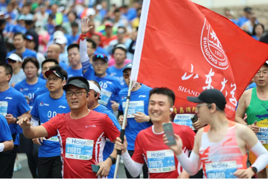 的旗帜,那一抹山大红成为整个赛道上最靓丽的风景线!一路上,“山大加油”的欢呼声此起彼伏,有幸跑在山大的旗帜下,更是让每位校友内心油然生出万分的自豪感和不竭的动力!