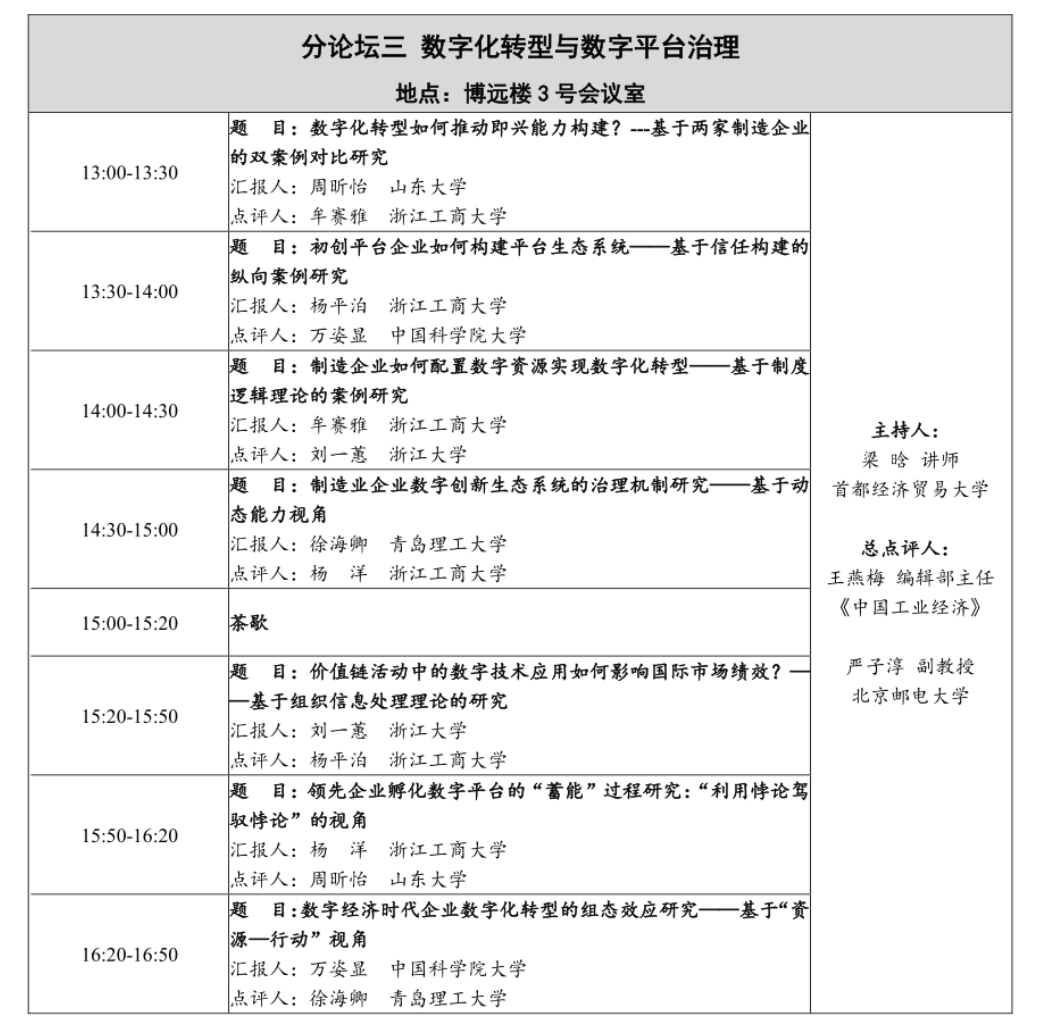 2023年11月24日,由首都经济贸易大学主办、首都经济贸易大学工商管理学院和会计学院共同承办的第五届“中国青年管理学者论坛•工商管理论坛”于首都经济贸易大学举办,论坛以“中国式现代化背景下的企业可持续发展”为主题,号召青年管理学者立足新发展阶段、新发展理念和新发展格局,结合中国的工商管理实践,重点关注绿色转型与可持续发展、数字化转型、企业创新等研究前沿,剖析中国工商管理问题,讲好中国工商管理故事。国产视频