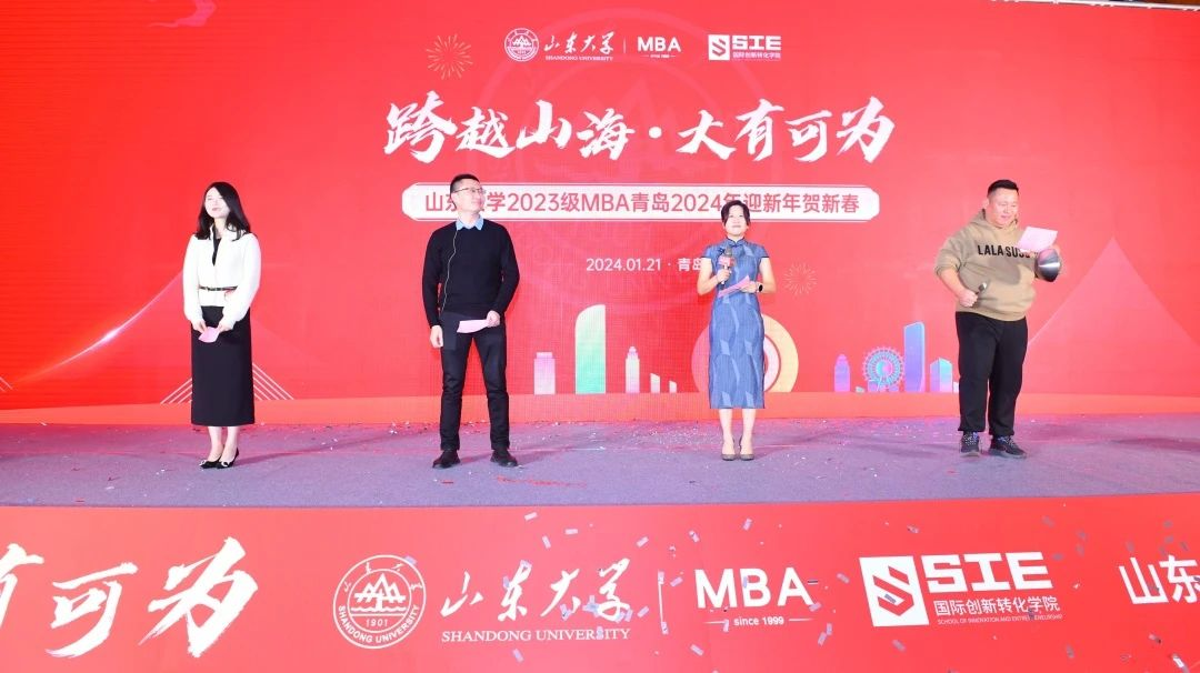 MBA青岛教学点2023级同学们怀着激动又喜悦的心情,欢聚一堂举行迎新春贺新年年度交流会。国际创转化学院副院长乔岳,副院长邢建平,办公室主任、EDP中心主任郑海涛,MBA青岛教学点主任陈卓,人事党务外事秘书胡爽,学院部分教职工及往届MBA青岛班的校友代表和赞助商参加年会。