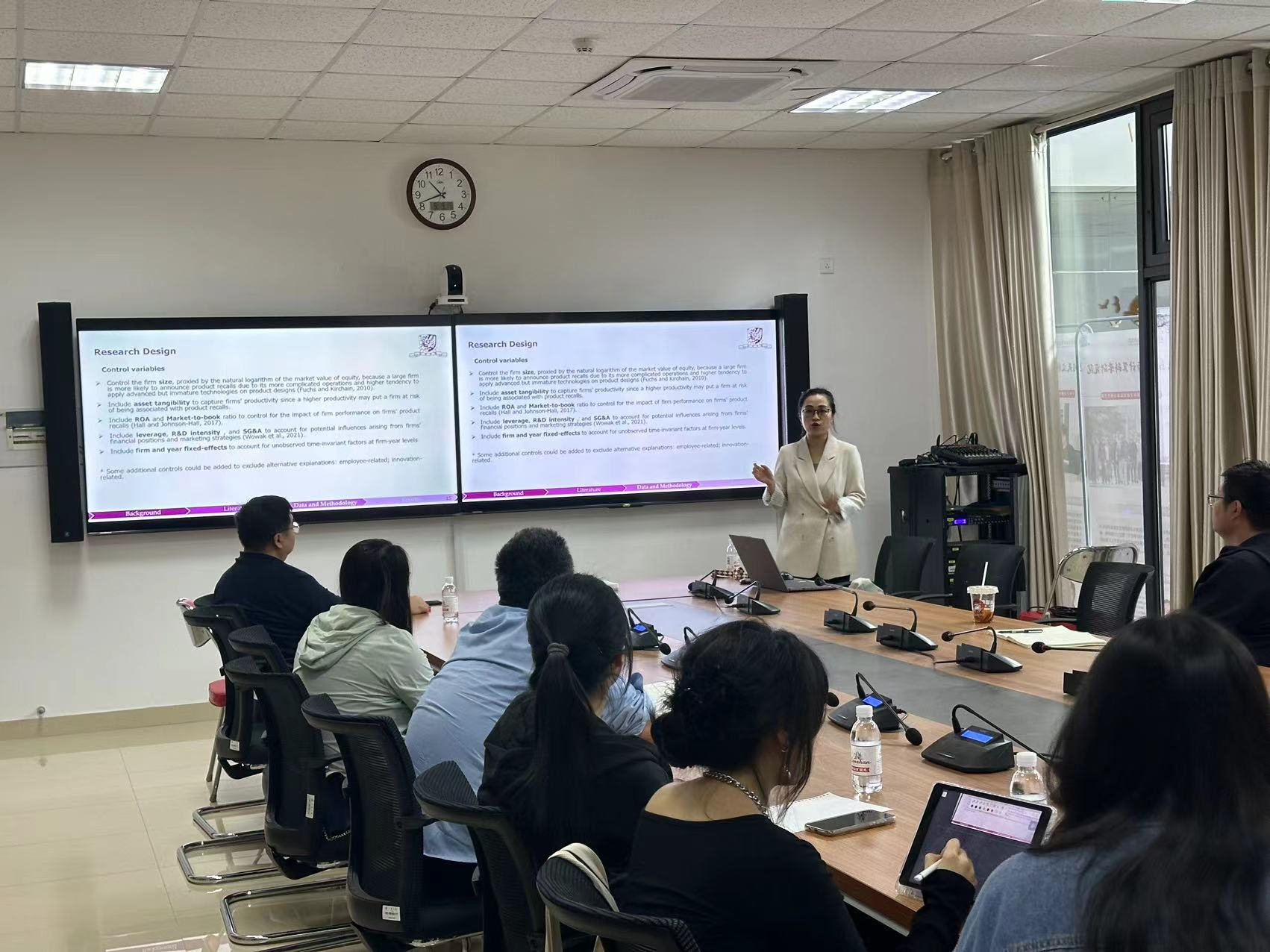 作“消费者承担环境监管成本吗?来自氮氧化物配额交易项目的证据”的专题讲座。讲座从ESG的角度出发,探讨了研究的选题动机,并发现受氮氧化物配额交易项目(NOx Budget Trading Program, NBP)监管的企业的产品质量问题有所增加。研究发现那些国产视频中强调产品质量责任感的、财务压力较小的、业务较为单一的、在产品市场中更容易被替代的,以及电力能源消耗较少的企业,产品质量受到该政策的影响相对较小。研究进一步发现受环境监管的企业更有可能为了节约成本而在原材料质量上有所妥协,或者将生产线外包给其他公司以降低成本。最后,部分企业通过增加对绿色创新的探索努力或提高运营效率等长期可持续解决方案来应对环境监管。汪晓樵助理教授还进一步与在座师生分享了在国际顶尖期刊上的发表经验,就中国问题的发表经验与在座老师进行了交流。