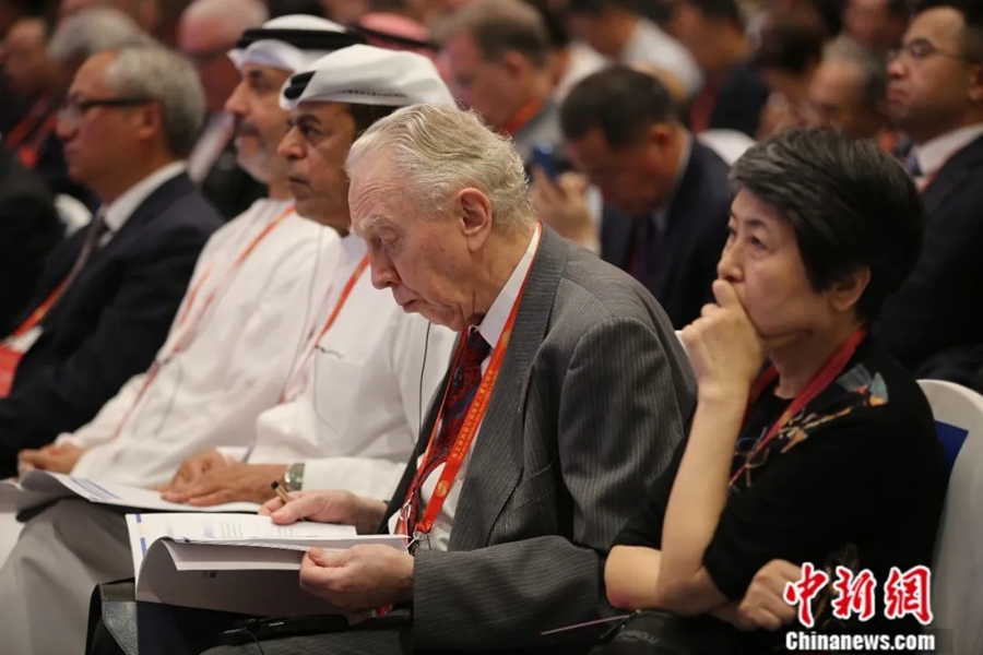 第五届跨国公司领导人青岛峰会8月27日至29日在山东青岛举行,图为与会嘉宾参加本届峰会开幕式