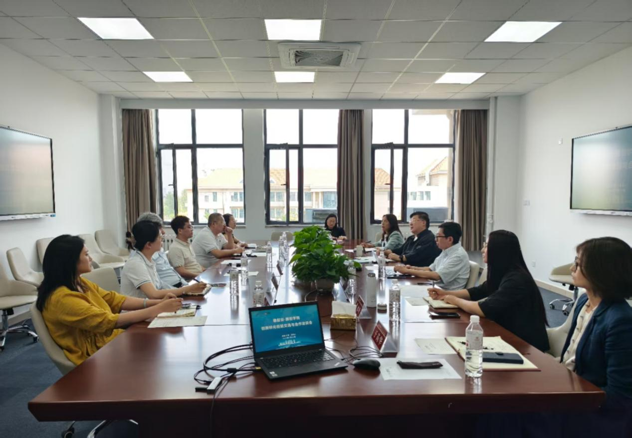 本次会议主题为“创新转化经验交流与合作”,会议双方本着“资源共享、优势互补”的原则积极开展沟通交流。主要围绕联合创新中心、EDP项目开发与培训、学历教育合作、学生实践与创业孵化等议题展开研讨。