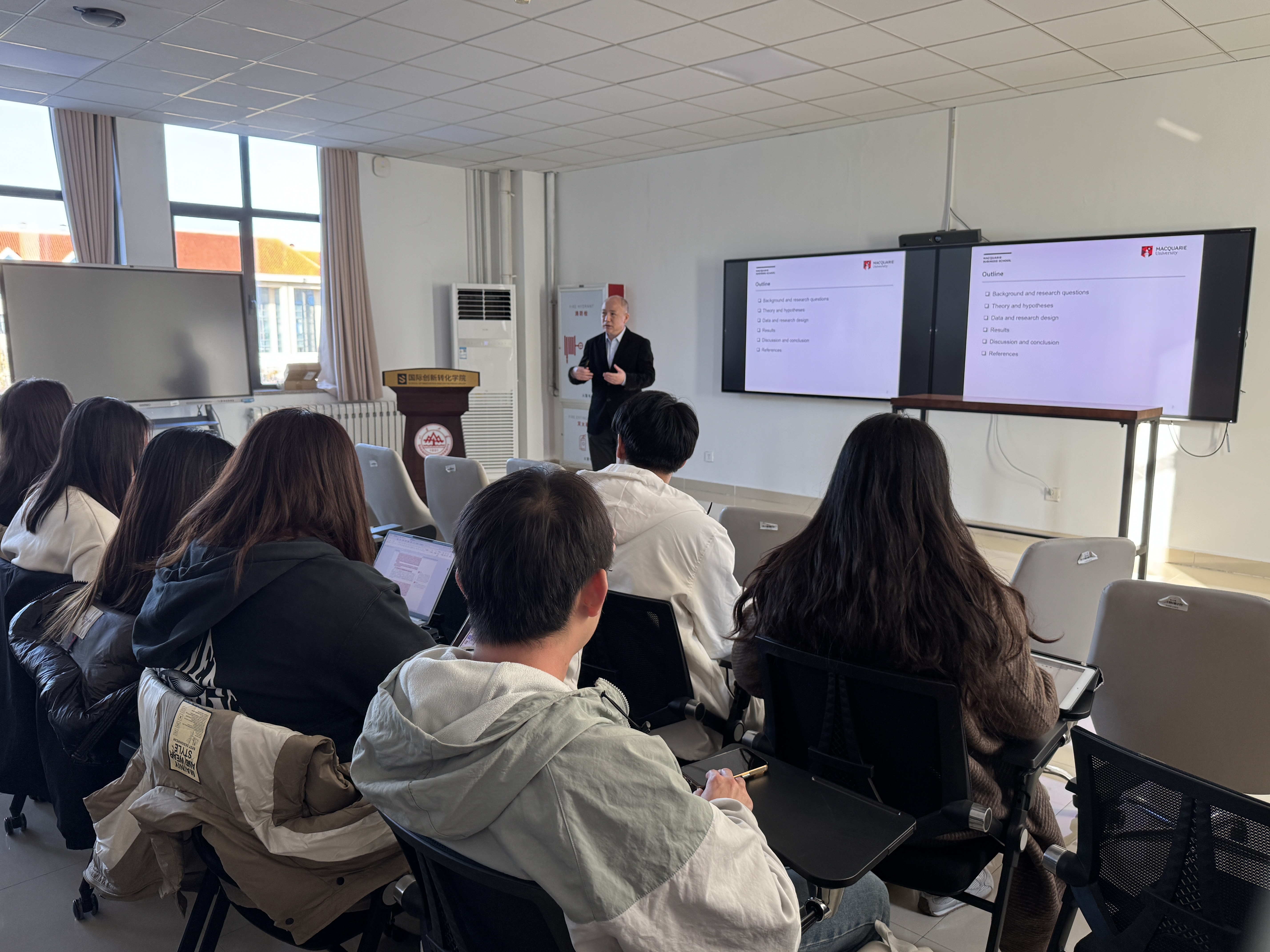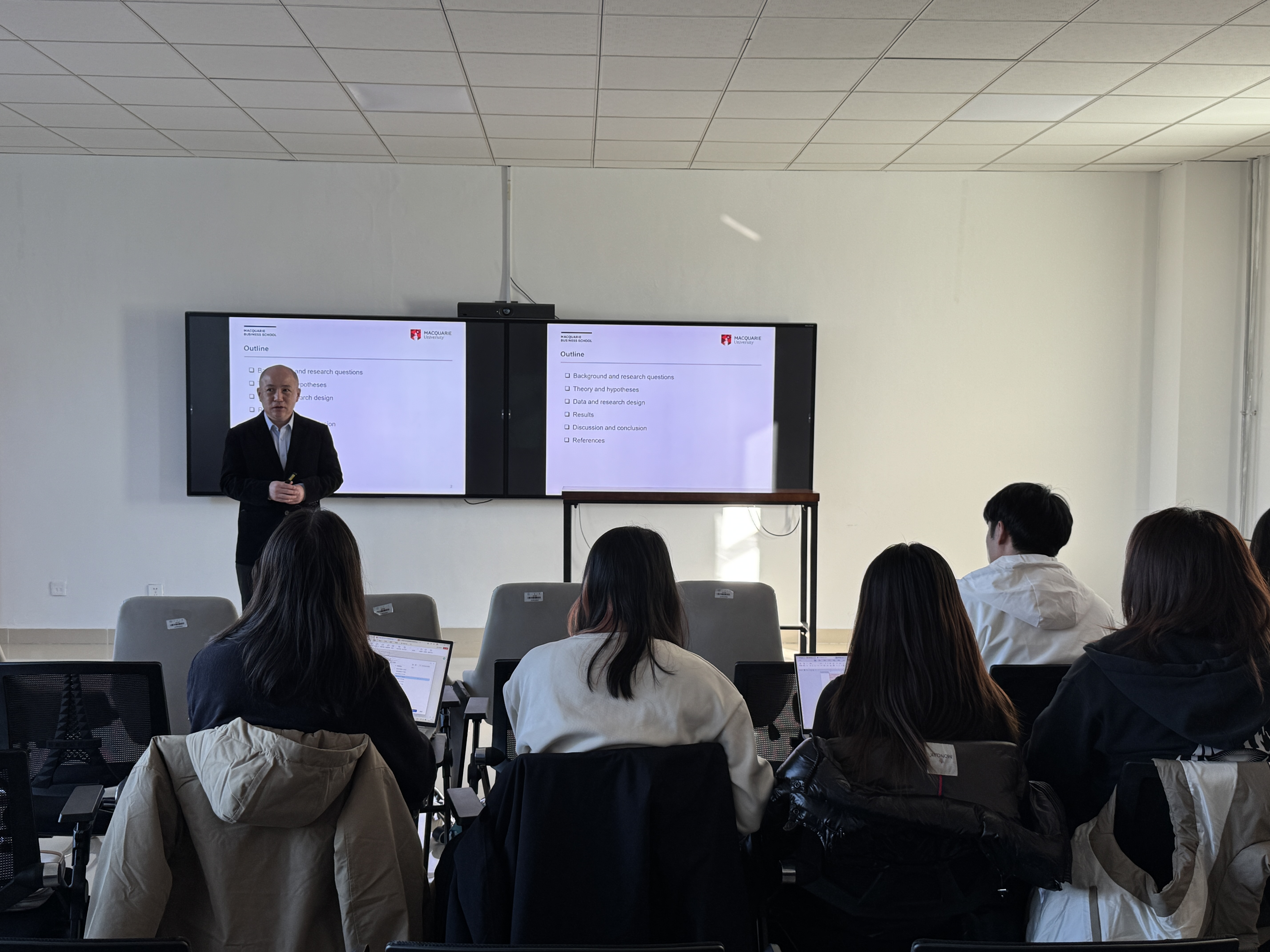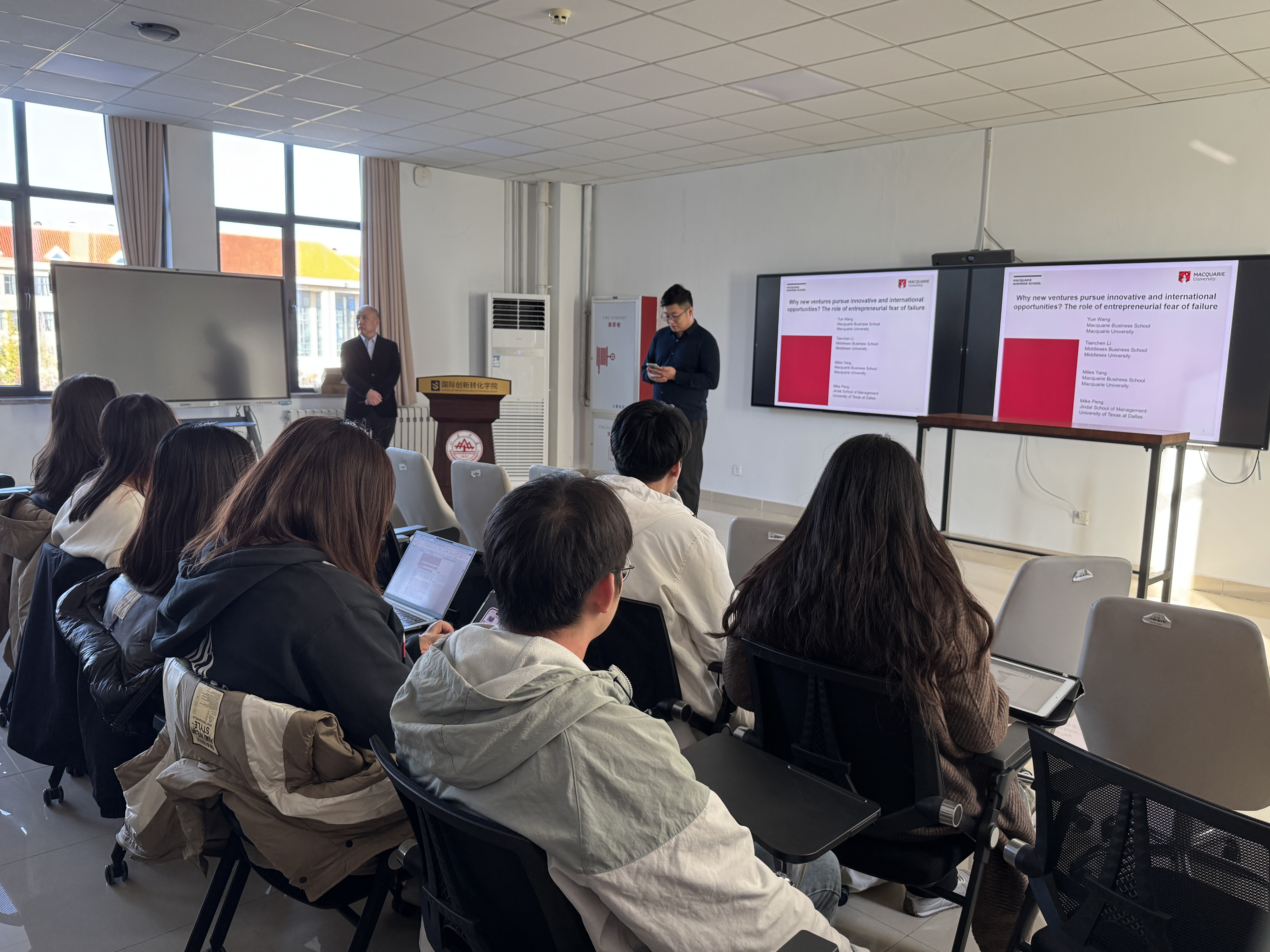 在青岛校区会文南楼B座多功能厅成功举办了题为“New Ventures’ Preference for Innovative Opportunities and Its Impact on the Degree of Internationalization: The role of entrepreneurial fear of failure”的学术讲座。讲座特邀澳大利亚麦考瑞大学管理学院王悦副教授担任主讲。