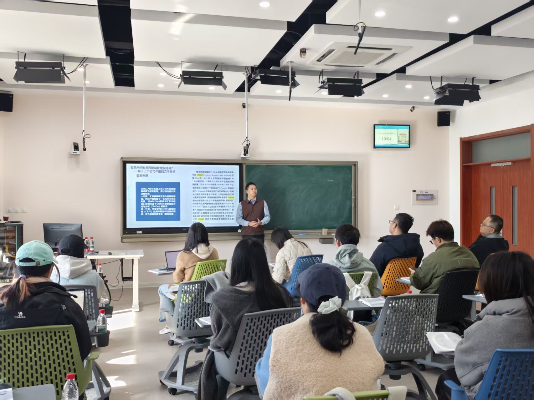 在交流环节,师生们就数据获取流程、具体指标构建方法、文本分析技术细节等与主讲团队进行了热烈而深入的讨论。本次研讨会旨在链接优质科研资源、服务学院师生发展,通过引入业界专业数据团队,有效搭建数据供给与科研需求桥梁。