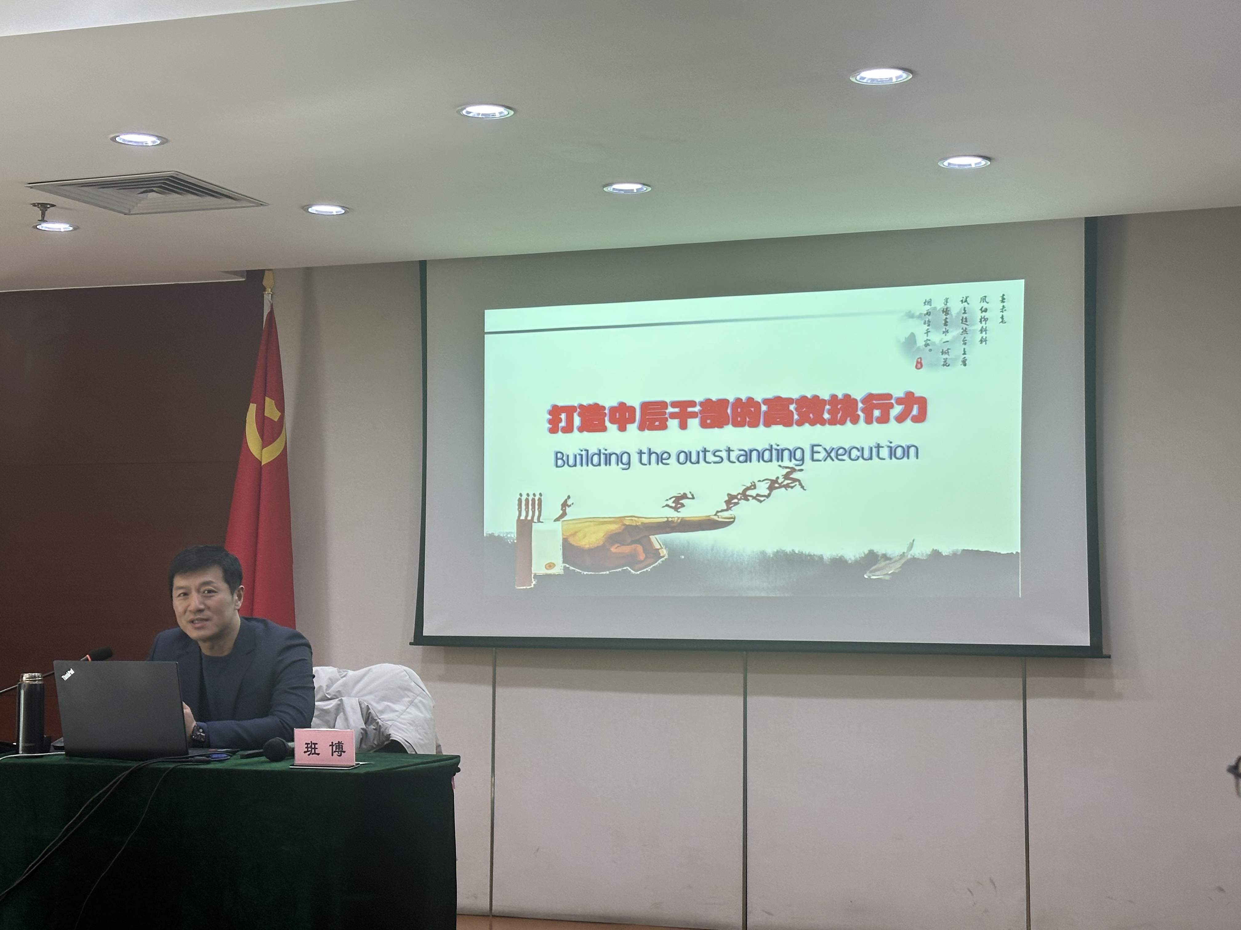 班博以《打造中层干部的高效执行力》为主题,带领大家思考什么是执行力,通过了解执行力的内涵和构成要素,让学员能够识别与挑选执行型人才,并提出执行不力的病因及解决对策。
