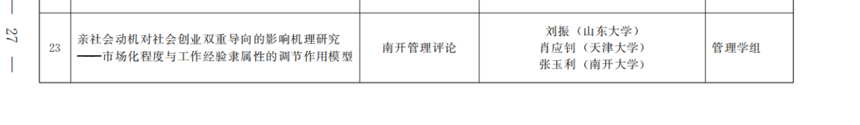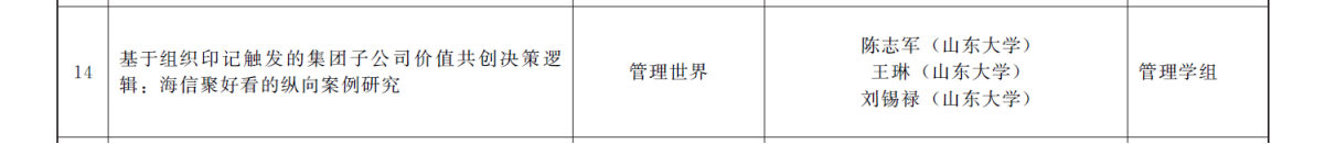 副教授王琳团队的成果《基于组织印记触发的集团子公司价值共创决策逻辑:海信聚好看的纵向案例研究》荣获二等奖,副教授刘振团队的成果《亲社会动机对社会创业双重导向的影响机理研究——市场化程度与工作经验隶属性的调节作用模型》荣获三等奖。